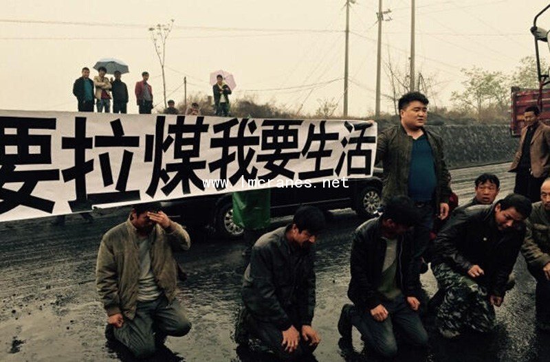 4月18日下午,陕西韩城,多名拉煤司机被困在韩城市桑树坪镇雷岭村,当地村民阻拦了他们的去路。在雨中,拉煤司机拉出横幅并下跪求村民放行。据了解,当地有一个矿井,最近一个公司的车队通过招标后和矿井签订了协议,负责运输煤矿。可是当地的村民认为,车队较低的价格影响他们去矿井拉活儿,所以就让一些老人和妇女堵着路,不让车队经过拉煤。目前,经过民警做工作,村民已经离去,拉煤车辆均已逐一通过。据法制晚报 图片旋臂吊厂家摘自自网络 。