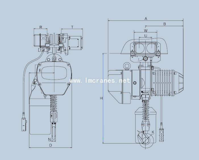 重物吊上吊下都有极限开关装置,使电机自动停止,以防止链条超出,确保安全。