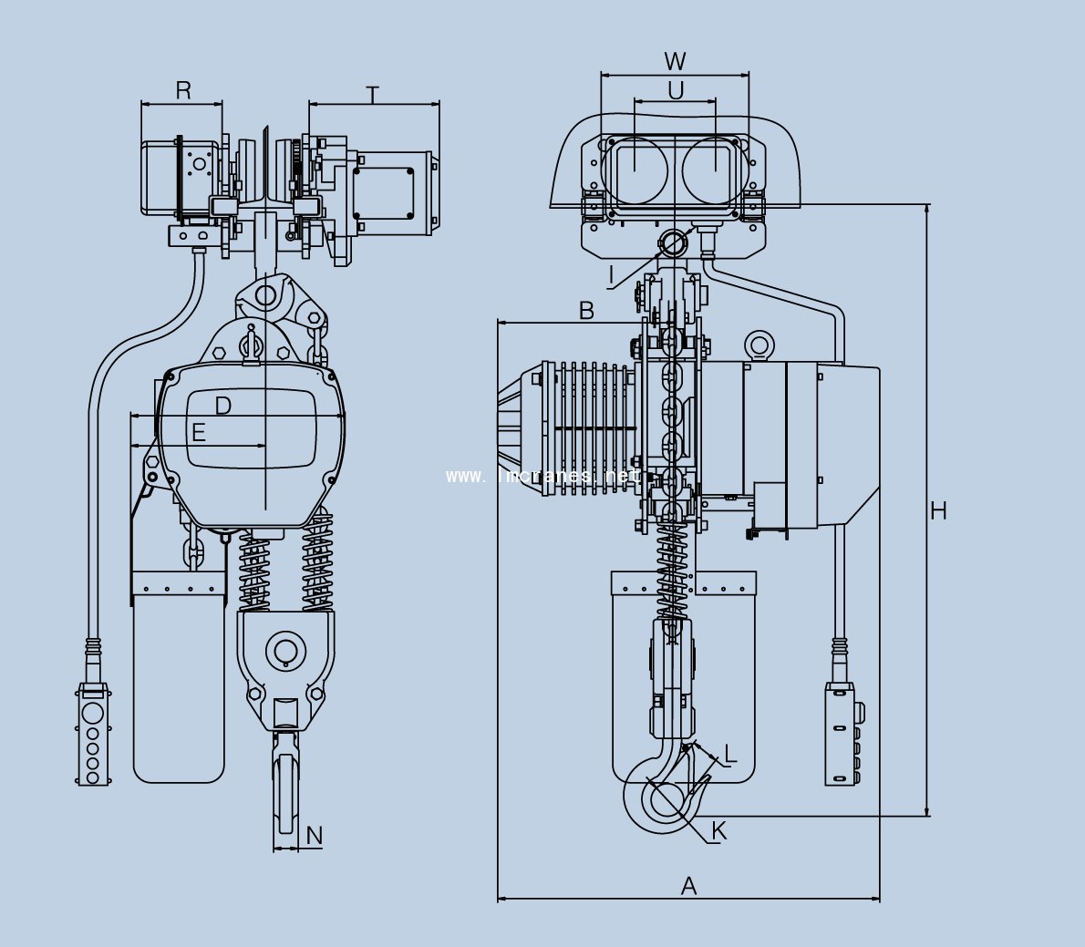 重物吊上吊下都有极限开关装置,使电机自动停止,以防止链条超出,确保安全。